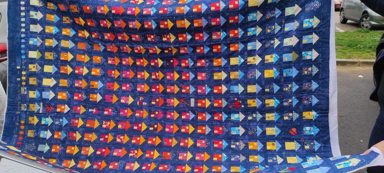 J’ai retrouvé Nadège dans ce même club, une quilteuse inventive qui avait pris des cours avec Hélène Lafforgue au magasin toulousain Quilt & Patch. Elle a été à bonne école et ses quilts sont remarquables. Voici Trophées :