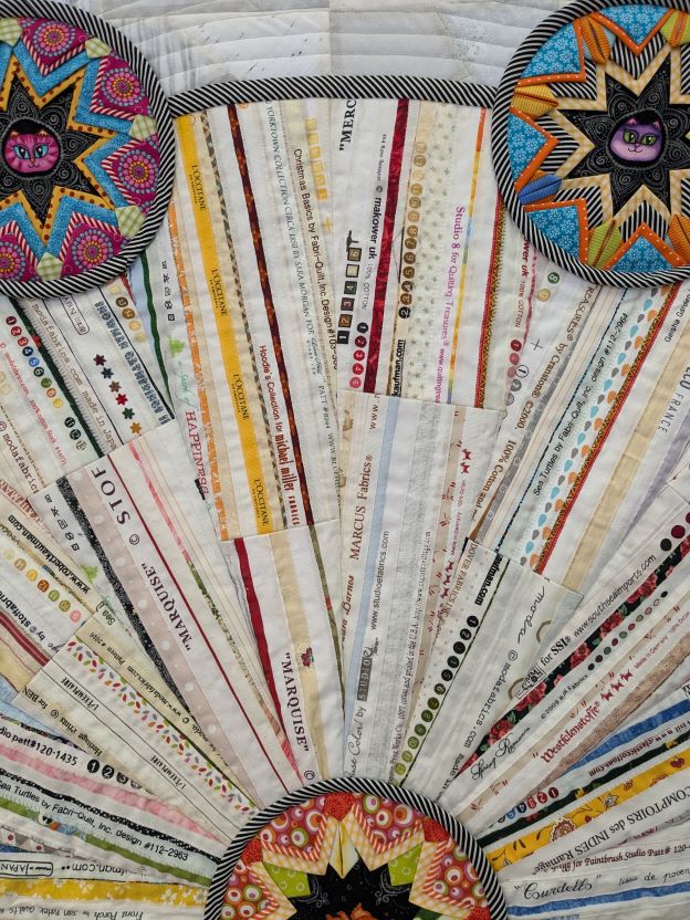 Régale-toi, Annie, profite bien de SMM… J’ai aperçu que de nombreux fabuleux quilts américains seront exposés, dans notre style impro-moderne-récup. Ah la la, je vais manquer tant de choses, tant de rencontres !! Mais si tu as l’occasion, salue bien Victoria Findlay Wolfe de ma part, je crois qu’elle saura qui je suis, l’amie française de LeeAnn !!
