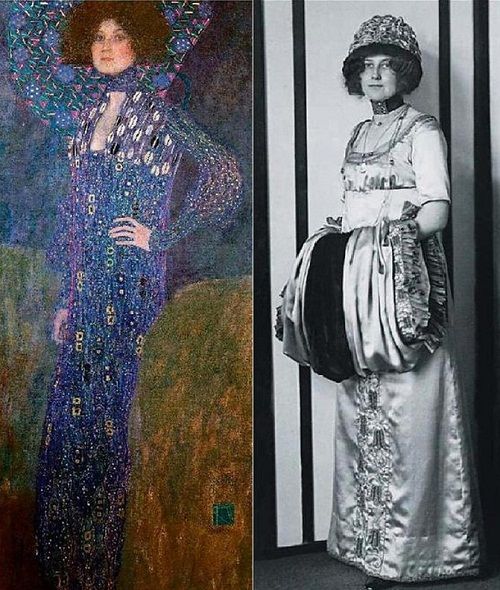 Emilie devint la muse éternelle de Klimt, elle lui fit évoluer son style et réciproquement, et il sacralisa la beauté de la femme et sa fusion avec la nature typiquement Modern Style, dans une richesse byzantine hypnotique. Emilie est le modèle de l’iconique Baiser et de bien d’autres chefs d’œuvre de Klimt.