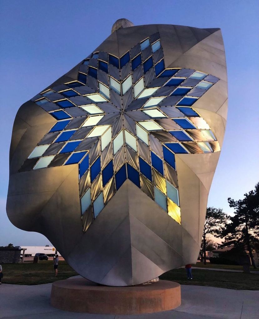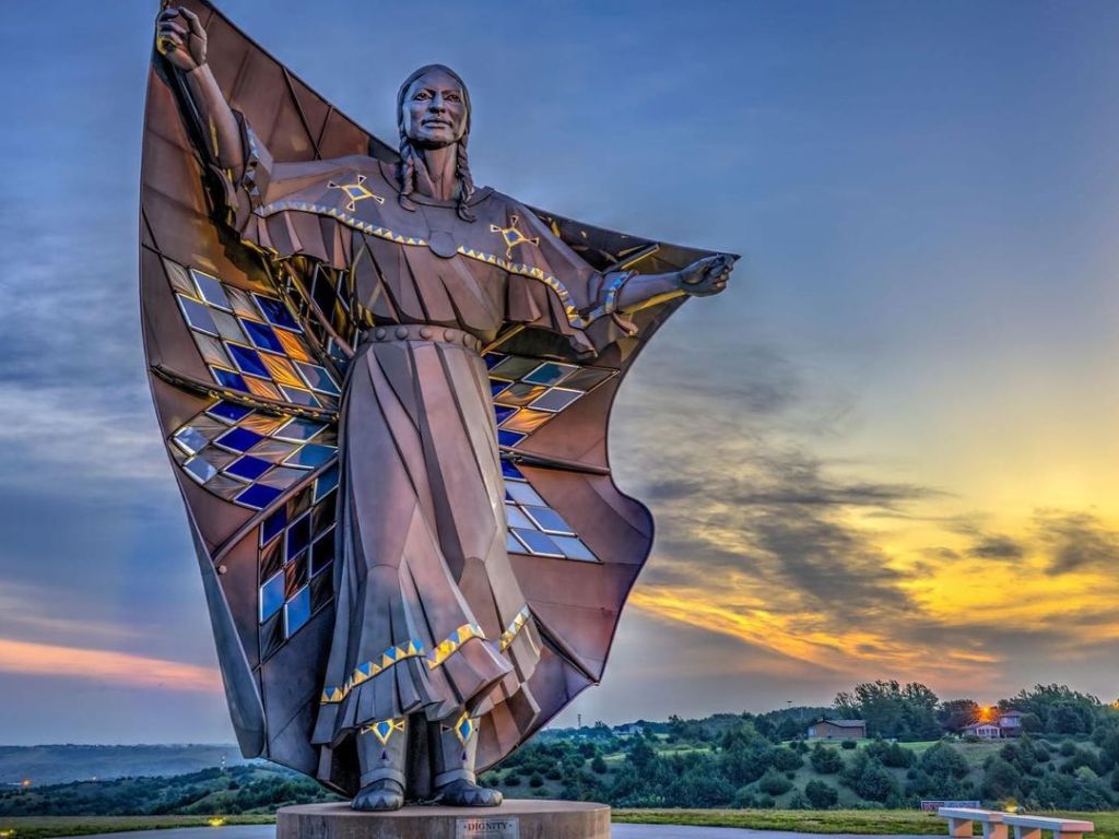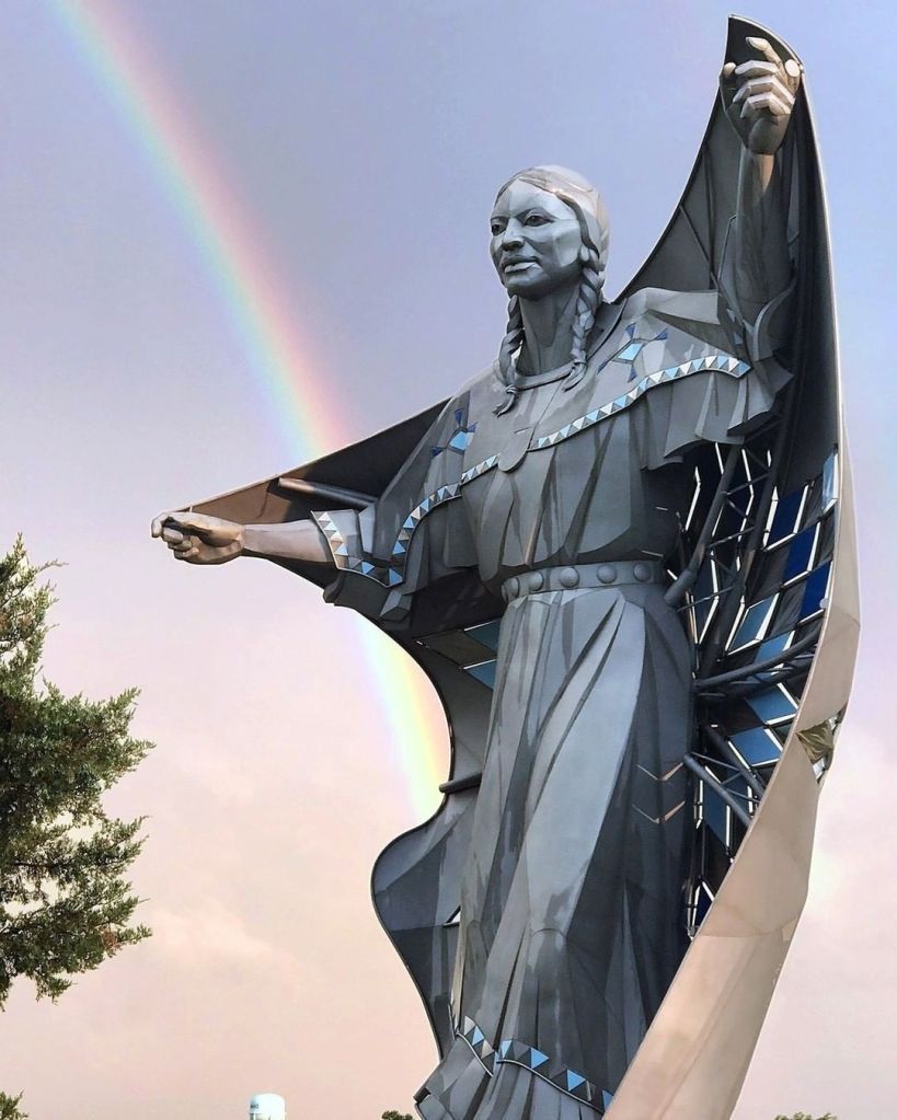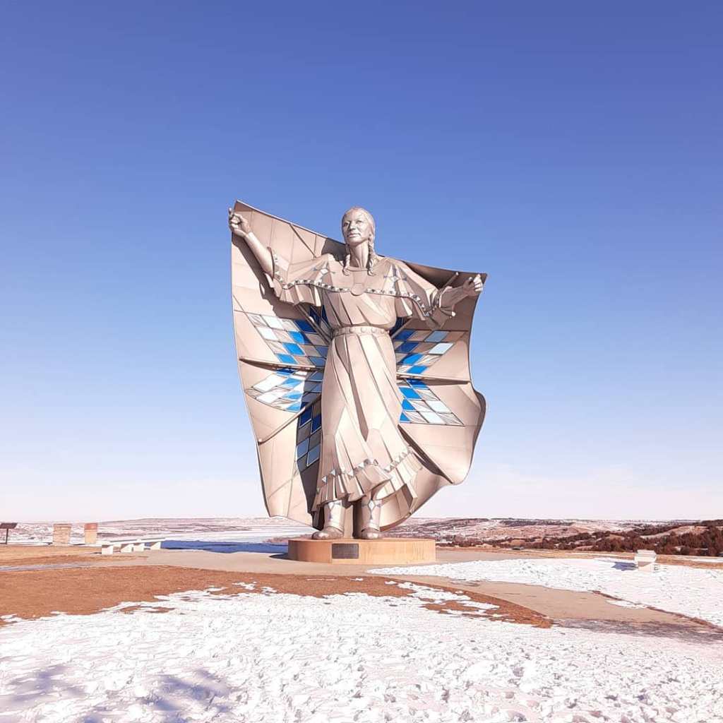 Un sculpteur, Dale Claude Lamphere, né dans le Dakota du Sud, a créé en 2016 une ode aux peuples de cet État, les Lakotas et Dakotas, avec cette statue éblouissante :