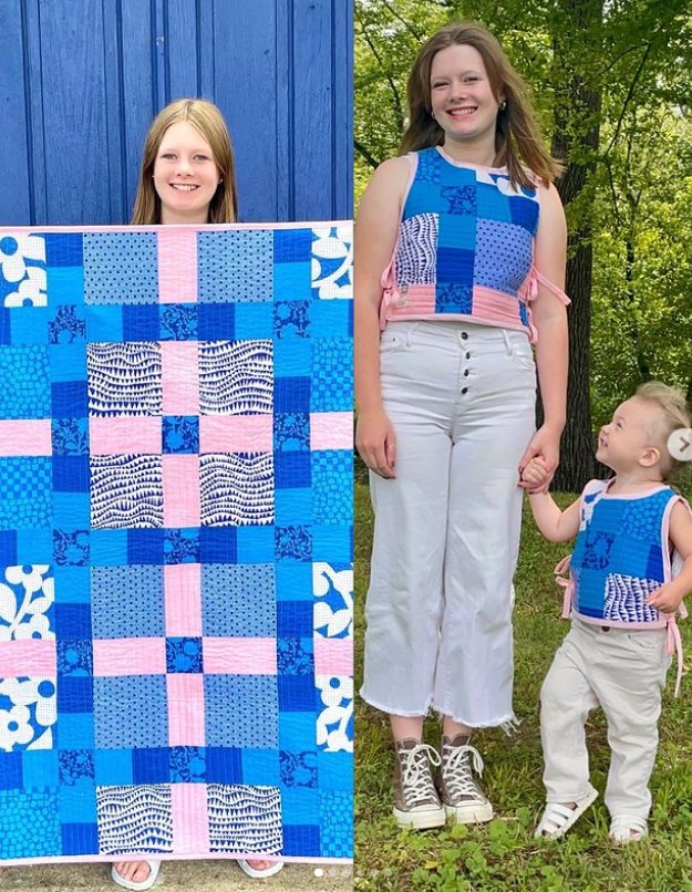 La jeune Genny, fortement encouragée par sa mère, commence à partager ses ouvrages sur Instagram et devient à l’âge de 12 ans une Jeune Entrepreneuse ! Très vite, les entreprises majeures approchent cette jeune prodige : Aurifil, Oliso, Olfa, Free Spirit Fabrics et bien d’autres. Elle devient influenceuse dans ce monde compétitif, toujours avec son grand sourire et sa soif d’apprendre.