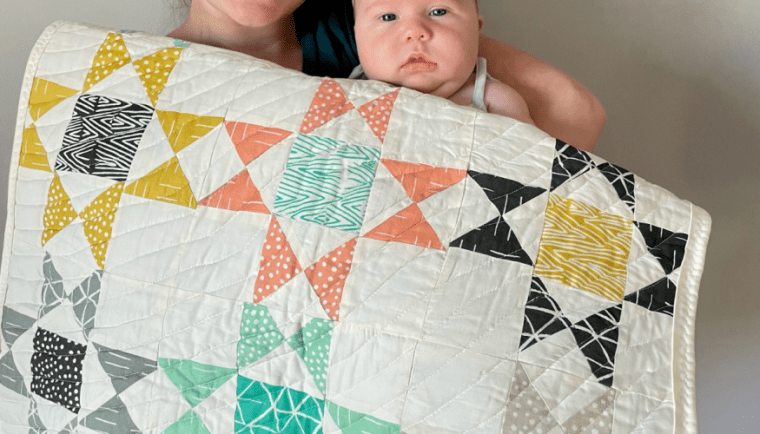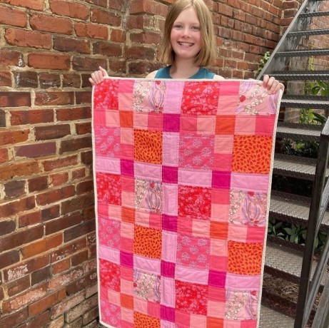 Alors, au sein de la Guilde des Jeunes Quilteuses, elle participa à la réalisation de blocs pour des quilts destinés à des personnes dans le besoin (des Charity Quilts, très prisés aux Etats-Unis), et après quelques mois, elle a voulu se lancer dans son premier quilt. Justement, sa maman attendait un bébé… Ce sera pour elle, sa petite sœur !