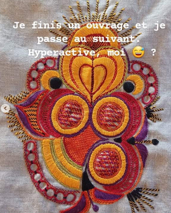 jamais plus de deux en même temps, idem pour les broderies. Sinon, chaque surface de la maison serait occupée 🤣.