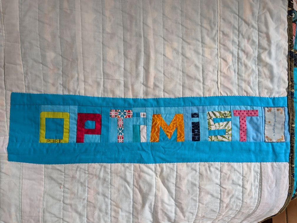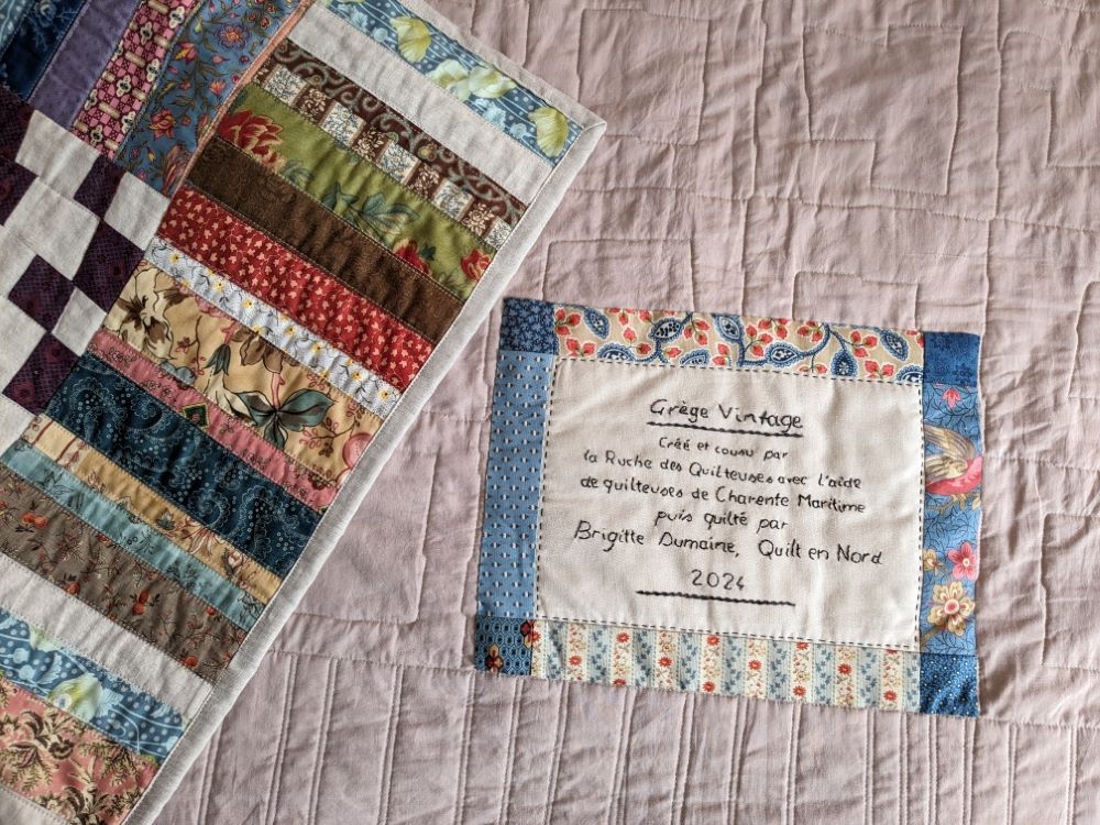 Allez, je vous en montre quand même un, avec son étiquette qui raconte beaucoup plus l’histoire du quilt :