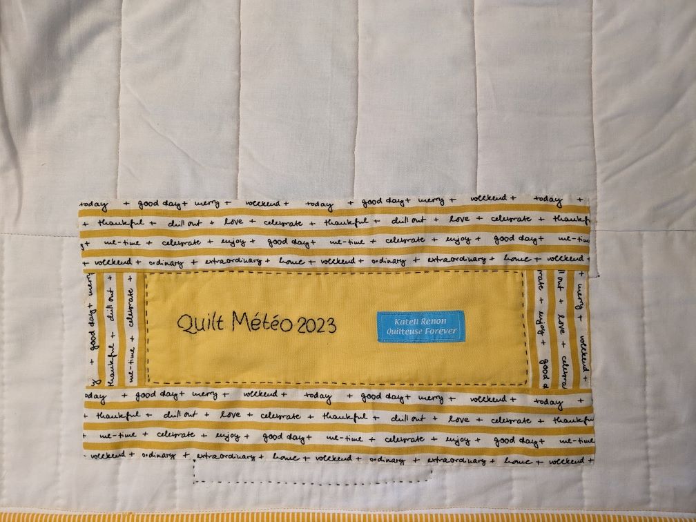 En ce qui concerne les étiquettes, parfois mes amies en font de réellement fantaisistes, bavardes, mais pour les quilts de Sacrés Tissus, nous avons été parfois très rapides, moi en particulier, j’ai même oublié parfois de mettre l’année, mais c’est soit 2023, soit 2024.