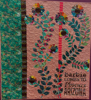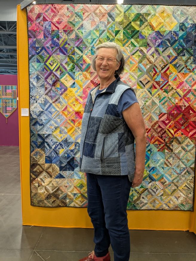 Quant aux galeries de quilts personnels, ils dévoilent beaucoup de la personnalité de l’artiste. Dans la même alcove que moi, se tenait la pétillante Barbie Mitchell, Australienne et artiste de renommée internationale. Son style est très coloré, agréablement décoratif, mais si on creuse un peu, elle exprime des préoccupations profondes, tout autant que des jubilations !
