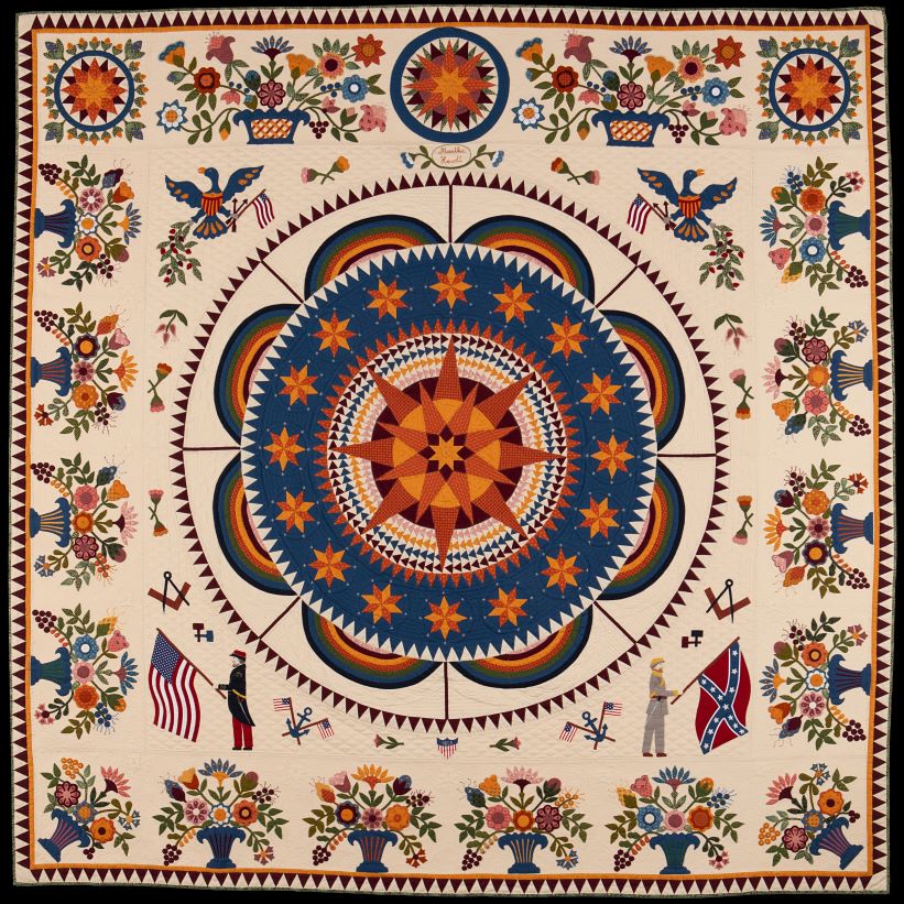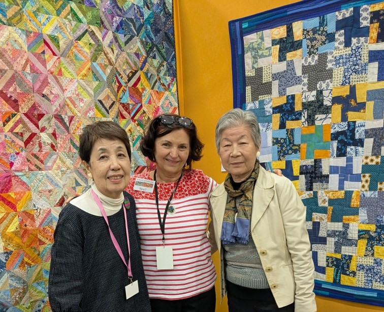 Outre leur immense talent, j’apprécie beaucoup, dans le groupe d’artistes qui se dédient aux quilts anciens, leur capacité à varier les styles, à nous faire admirer des centaines de quilts au fil des ans, sans qu’on ait l’impression de voir toujours la même chose. Les piécés ont la part belle, mais les appliqués harmonieux ou foisonnants aussi, tout comme les crazy et même des boutis… Ce sont des femmes qui font ce qu’elles aiment et elles ont bien raison. Je sais aussi qu’elles sont très contentes qu’il existe d’autres formes de patchwork, toutes les oeuvres de qualité se mettent mutuellement en valeur !