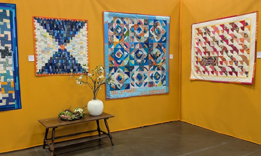 Faisons le tour des 12 quilts exposés, sur les 25 présentés dans le livre, en sachant que la fresque des Mille Fleurs se trouvait dans le couloir d’entrée :