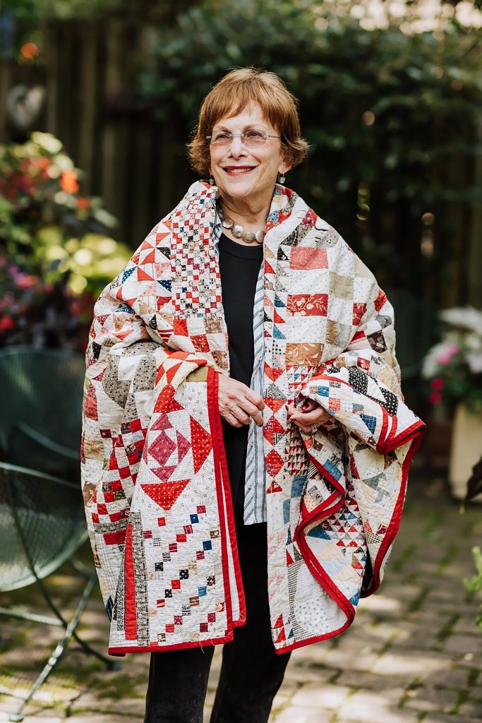 Cependant, Shelly Zegart n’était pas quilteuse elle-même, et cela intriguait souvent. Dans un article, la raison donnée est qu’elle ne s’asseyait jamais 😂. Et pourtant elle connaissait les styles de quilts mieux que quiconque.