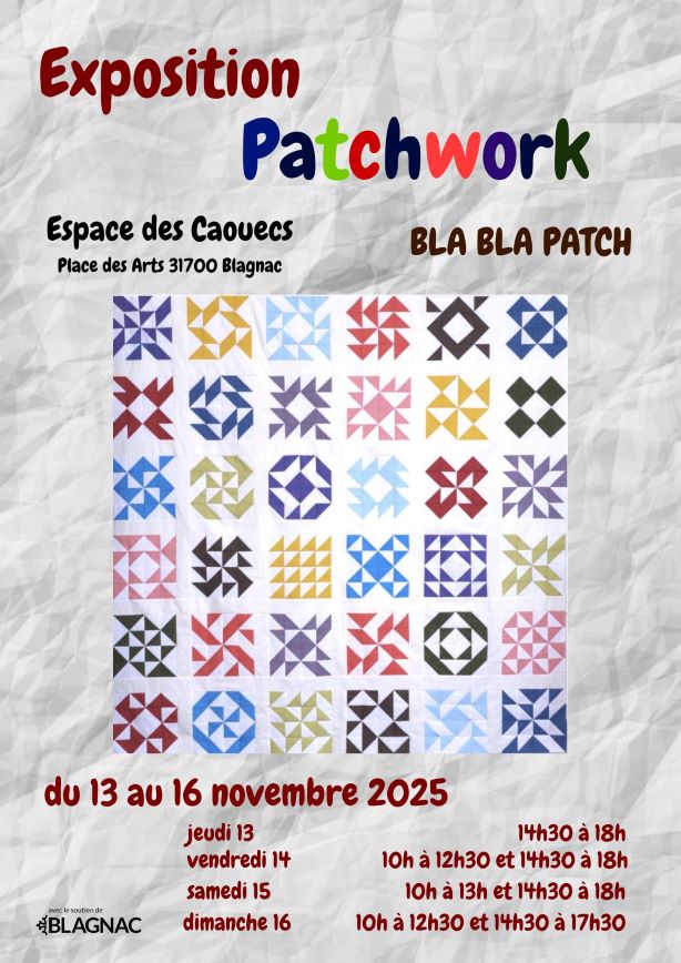 Pour annoncer l’ensemble de vos expositions, je vous conseille de poster vos annonces en priorité sur le Forum France Patchwork (Facebook). Vous y avez une grande communauté ! Cependant, je suis heureuse de vous présenter les expositions locales (autour de Toulouse) et celles auxquelles je participerai en tant qu’intervenante ou exposante. Alors voici les nouvelles !