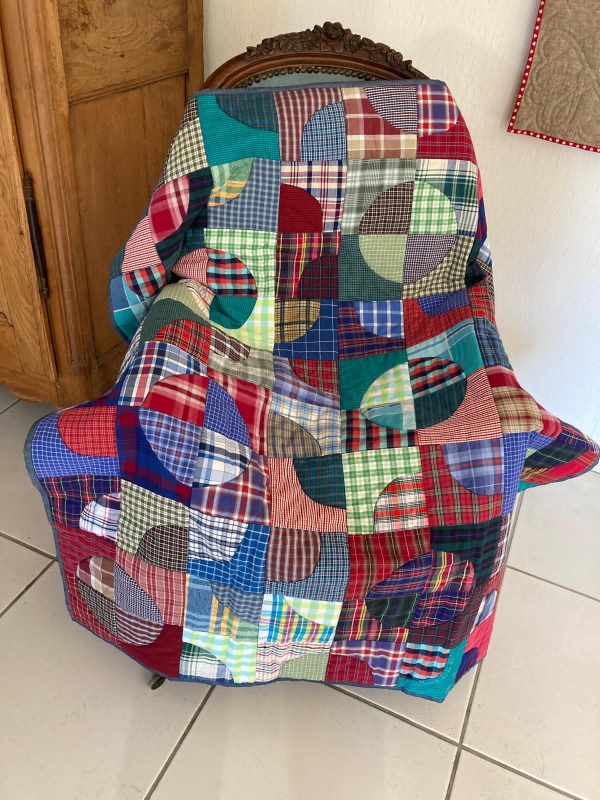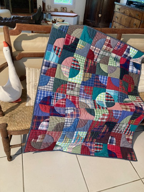 Le hasard a fait qu’en rangeant mes tissus, je suis tombée sur une mine de tissus écossais et que quelque temps après, Pinterest m’a envoyé la photo d’un patchwork constitué de quarts de cercles écossais.