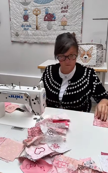 Elle fait du patchwork (ici avec des photos imprimées sur textile),