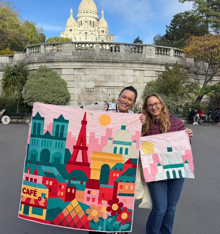 On voit des quilts visuellement simples, les nouveaux classiques, faits avec les techniques utilisées depuis une trentaine d’années, y compris la couture sur papier. Elles aiment en général les tissus unis et des imprimés vifs, les fonds blancs, l’essence-même des quilts modernes dès le début de notre siècle. On voit apparaître de nouveaux lieux de stages qui plaisent aux jeunes, comme l’Atelier Malesherbes dans le 9e arrondissement de Paris, fondé par Florentine, qui fait du patchwork tradi-moderne avec sa petite touche, mais offre surtout la possibilité de faire des stages pour toutes sortes de techniques avec les meilleurs spécialistes. Un article lui est consacré dans le numéro 166 des Nouvelles de France Patchwork (splendide couverture moderne de ce numéro également !).