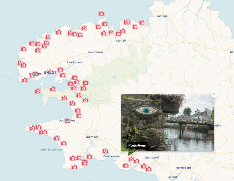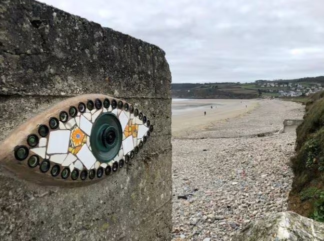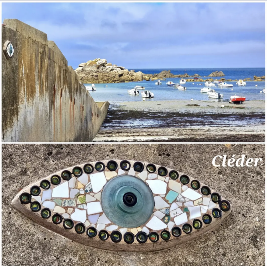 On peut donc se balader sur la côte du Finistère pour rechercher chaque œil ! Les créations sont parfois un peu difficiles à trouver : la marée haute peut les recouvrir, ou bien le sable, ou bien il faut contourner un rocher…