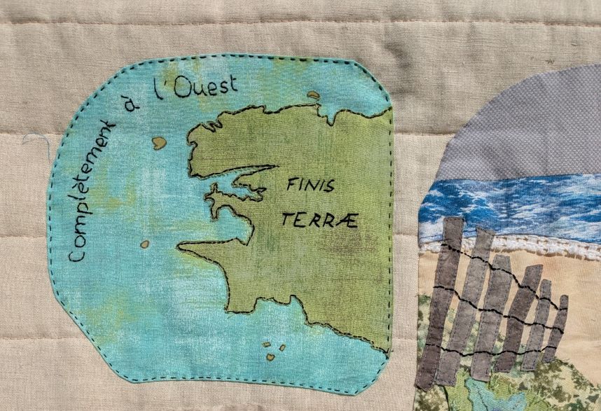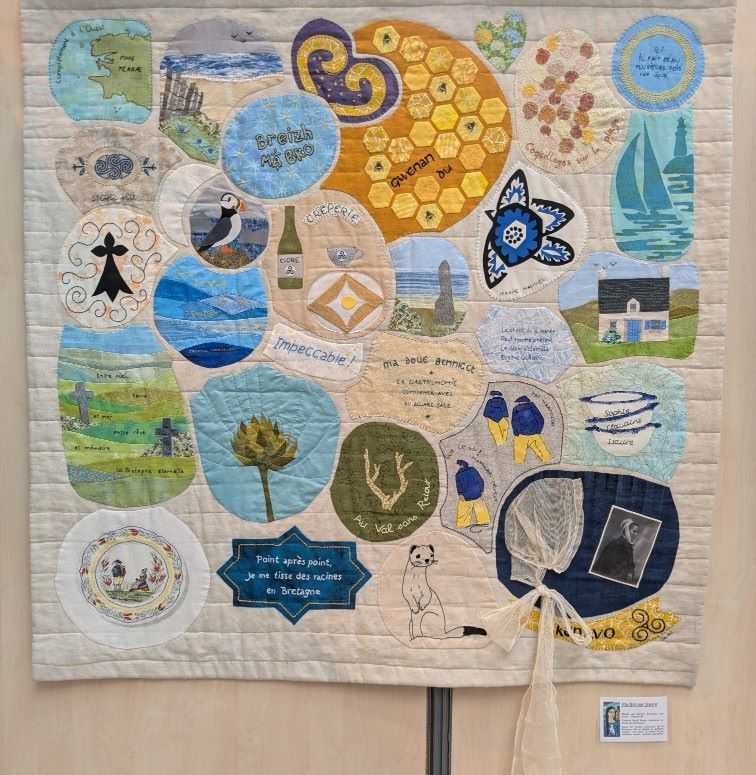 Cela faisait un bout de temps que j’apercevais ces Yeux, mais je n’en avais pas compris le message. Sinon, j’aurais fait une petite place à un Œil en mosaïque textile sur ce quilt, recueil des mille raisons de l’amour d’Isaure pour la Bretagne !
