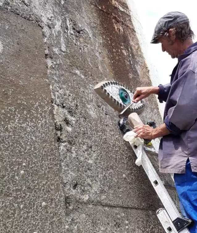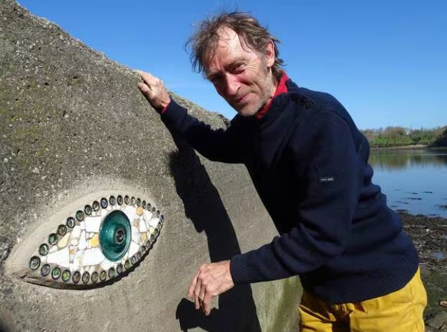 Il restera dans nos mémoires, particulièrement grâce à ses Yeux, des Yeux minutieusement élaborés chez lui, puis parsemés tout du long de la côte finistérienne, sur 1430 km tout de même du GR34 qui fait le tour de la Bretagne ! En voici quelques-uns, photos des archives Ouest-France :