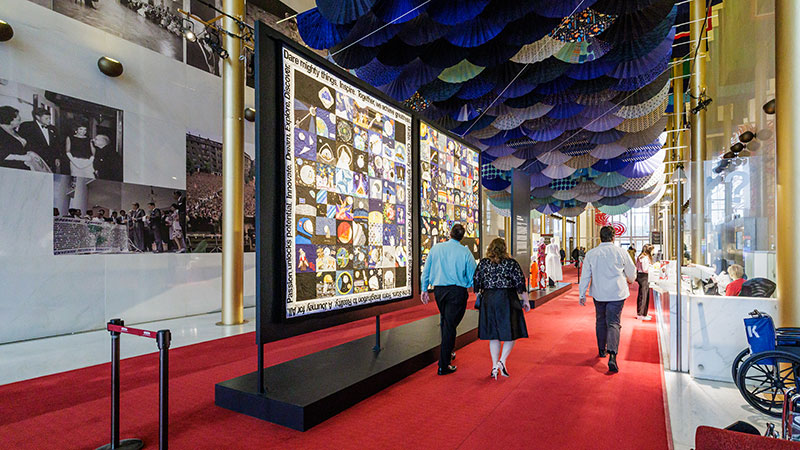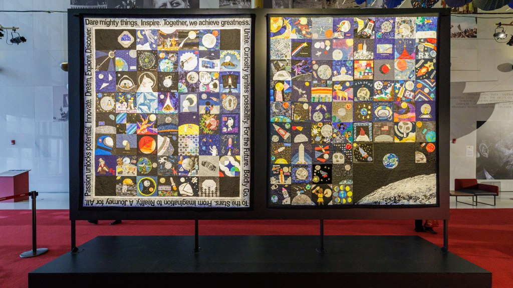 Des phrases entourent le quilt célébrant le programme Artemis, elles sont choisies et piécées par Karen Nyberg comme « Ensemble, nous accomplissons de grandes choses », « De l’imagination à la réalité », « Ose de grandes choses », « La curiosité ouvre la voie à de nouvelles possibilités », « La passion libère le potentiel », « Rêve, explore, découvre », « Inspire », « Pour l’avenir », « Va vers les étoiles », « Pour le Futur », « Va de l’avant avec audace », « Innove »… Personnellement, j’adore !