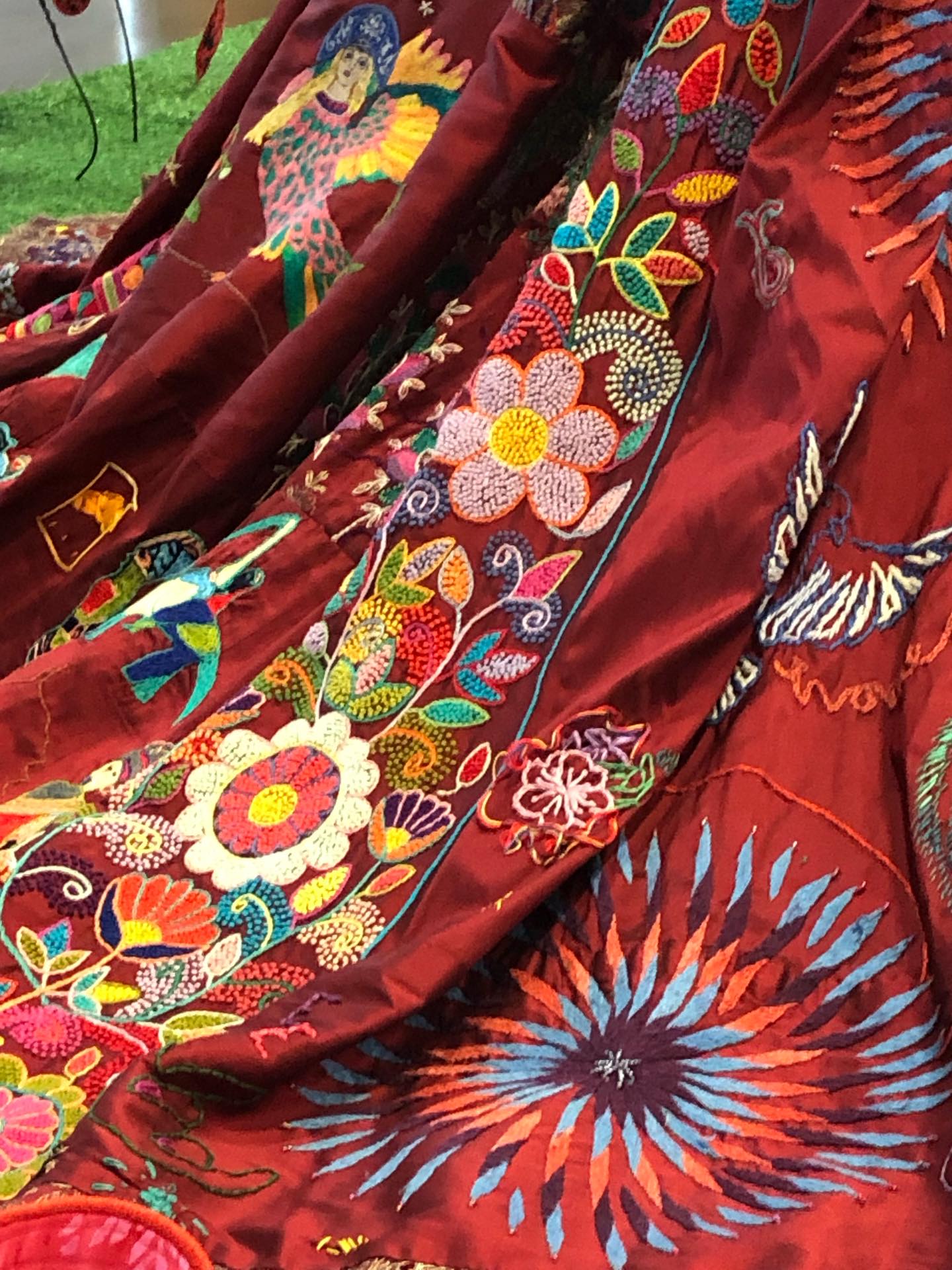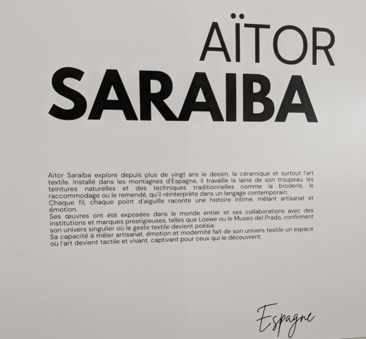 Quant à Aïtor Saraiba, son charisme attire femmes et hommes, on sent qu’il a des choses à transmettre. Il contraste avec les prouesses techniques des autres expos espagnoles. Lui, c’est l’humilité du petit point, celui qui, ajouté à son voisin, finira par raconter une histoire, ou formuler un vœu. C’est l’art pour tous. C’est l’amour de la simplicité à la japonaise, le désormais connu wabi-sabi qui accepte l’imperfection des choses, une vision très zen de la vie. Je me régale avec ses deux livres – je vous en reparlerai !