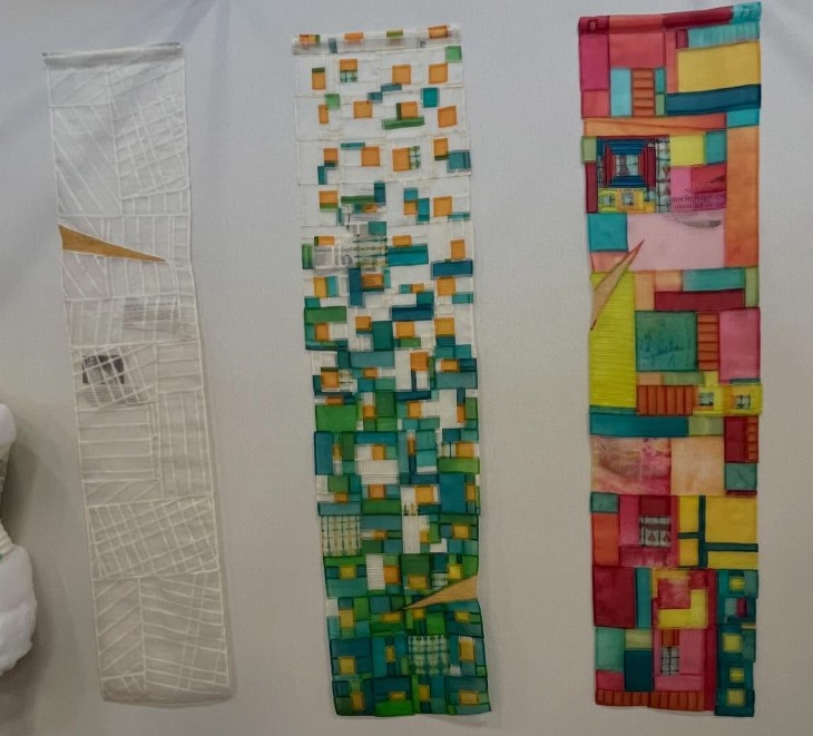 Les femmes espagnoles, en particulier Desedamas avec leur expo Ni Santes ni putes, notent que les avancées de leur société sur le patriarcat – el machismo est un mot bien espagnol – sont loin d’être satisfaisantes, malgré les progrès remarquables après le franquisme et les lois de ces dernières années. Comme dans la plupart des autres pays, il reste beaucoup à faire, pour des relations équilibrées entre les femmes et les hommes ; l’Espagne est toutefois très volontariste (vous pouvez lire cet article Ouest-France de 2023). Nous avons aussi admiré l’art qui caractérise ces artistes : les pojagis aériens, la beauté de la lumière avec la matière, effets qui changeaient d’un jour à l’autre, d’une heure à l’autre…