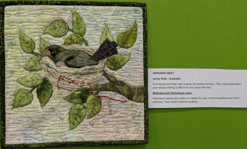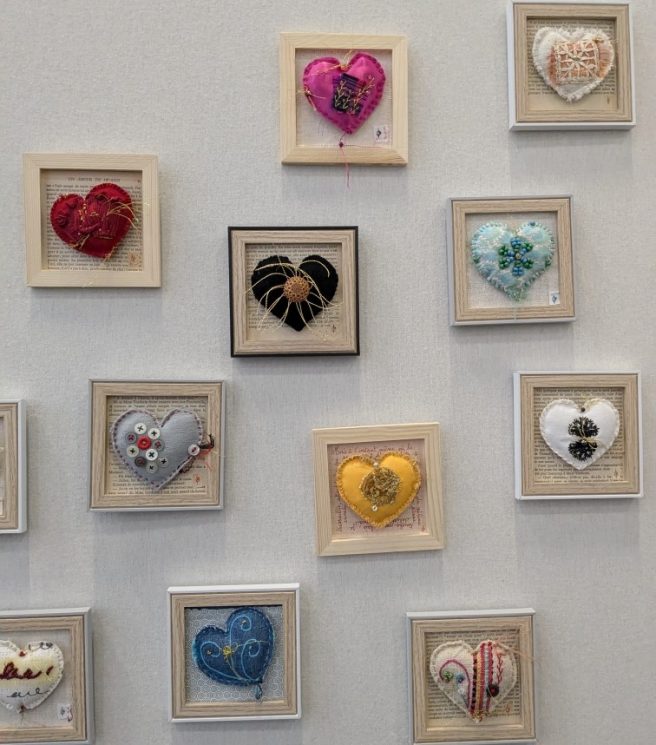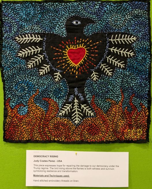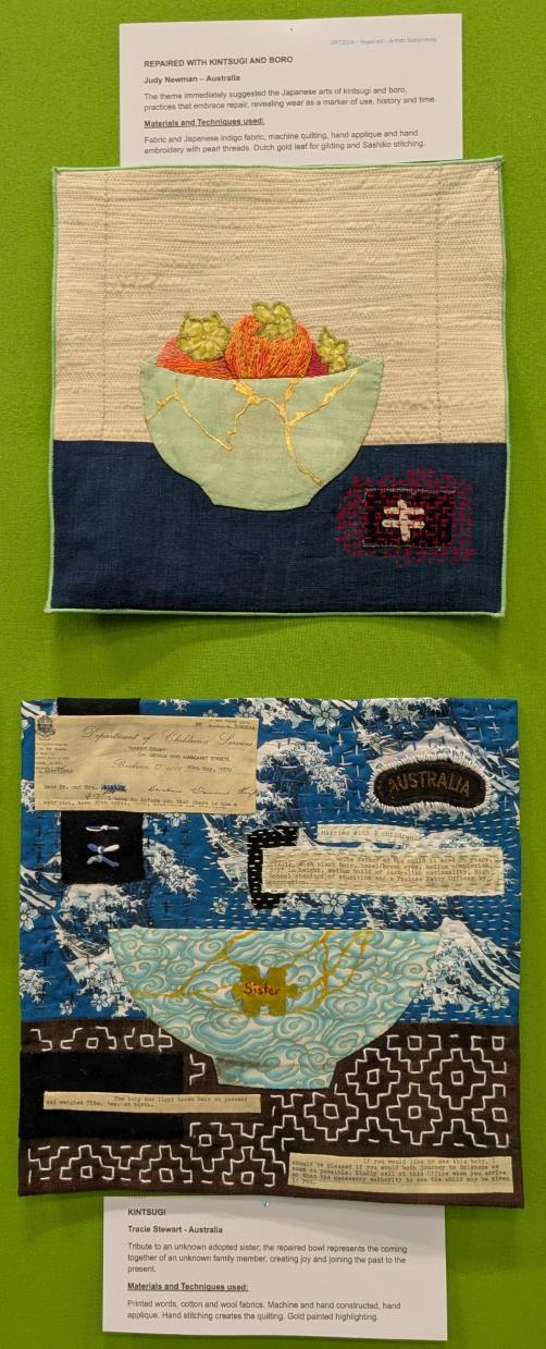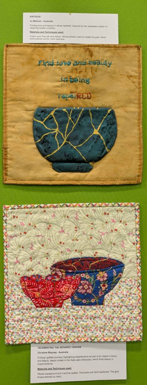 Elisabeth a apporté avec elle One Red Thread, le résultat d’un challenge international sur l’expression de la réparation, de la résilience, et la notion de kintsugi à la japonaise (ce qu’on répare devient plus fort). Certains sont particulièrement beaux, touchants, mais tous méritaient de l’attention :