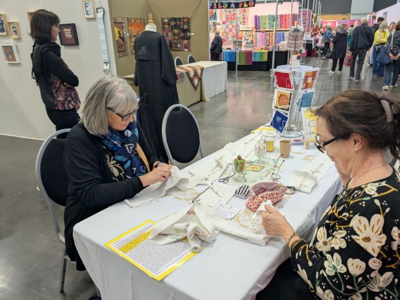 Ici, Domi et Fabienne, des Pyrénées-Orientales, passent un très bon moment à broder parmi les derniers mots de la ribambelle de phrases.