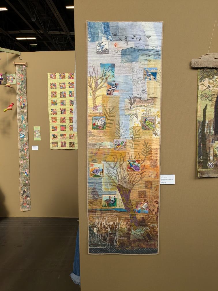 Les quilts Kawaï nous ont fait fondre le cœur. Quelles merveilles de précision, quelle beauté de près comme de loin ! Comme ce fut une des expositions les plus admirées (comme toujours, les Japonaises remportent l’adhésion du public !), vous pouvez trouver des photos de ces exploits textiles un peu partout sur Facebook et Instagram.
