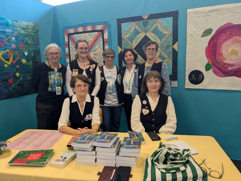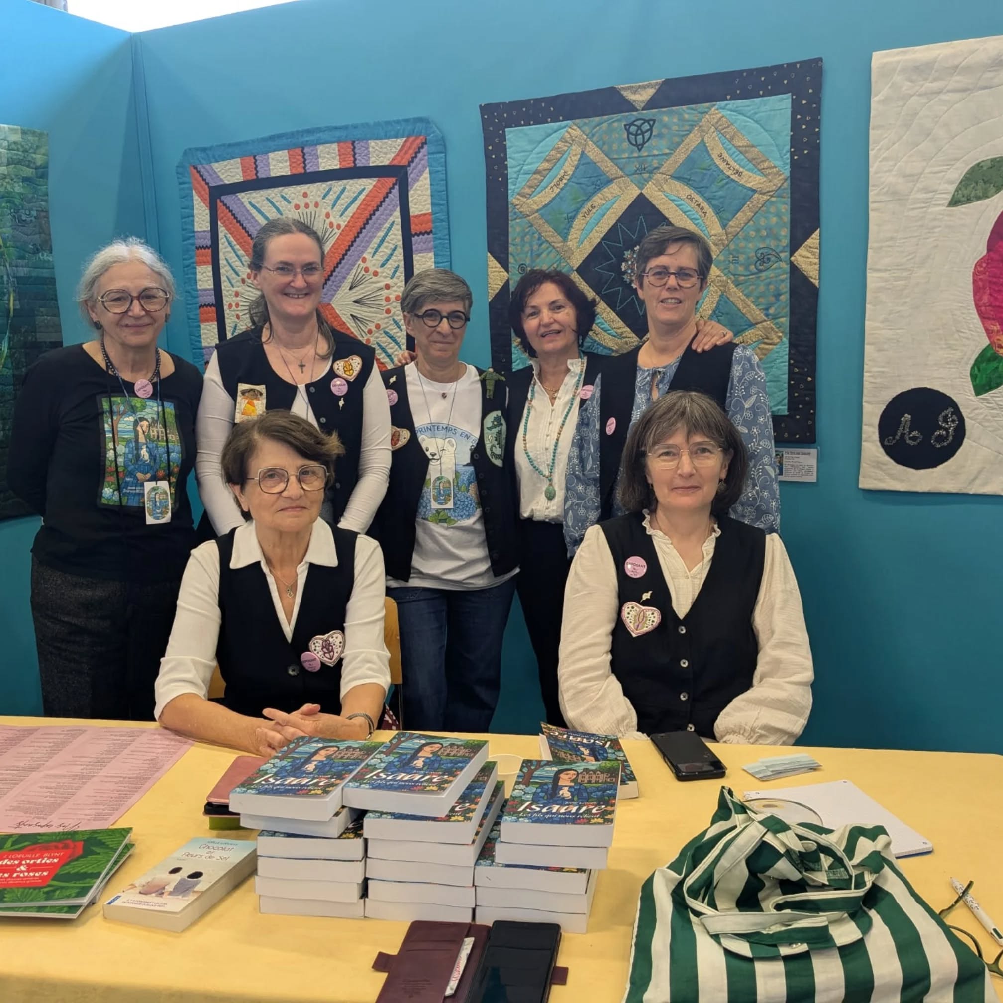 Revenons à Nantes. Si les deux premiers jours étaient noirs de monde, nous avons pris le temps de discuter avec chaque visiteur les deux jours suivants, en tout cas nous avons fait de notre mieux. Nous avions les pros de la présentation : Laurence, Myriam, Anne avaient un discours bien rôdé, merci à elles ! Smaranda savait également captiver son auditoire, même si elle était handicapée par des soucis de santé. Parmi les centaines (milliers ?) de visiteuses, beaucoup ont longuement conversé avec Joëlle, comme cette femme qui a transcrit sur son blog (riche en beauté et spiritualité) son sentiment sur notre aventure : c’est Joëlle Halgand.