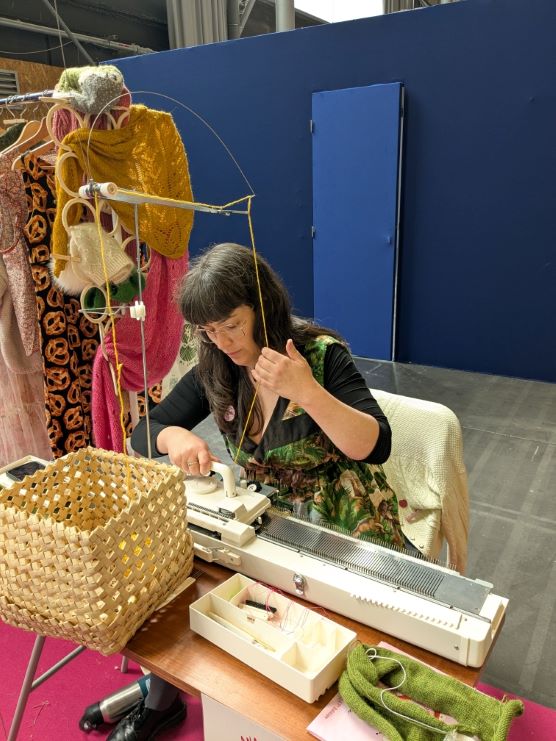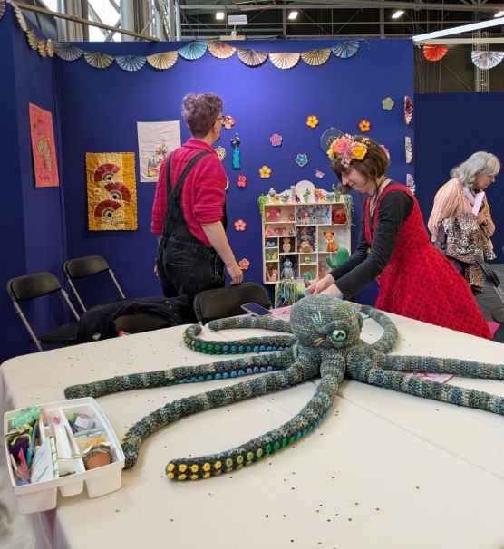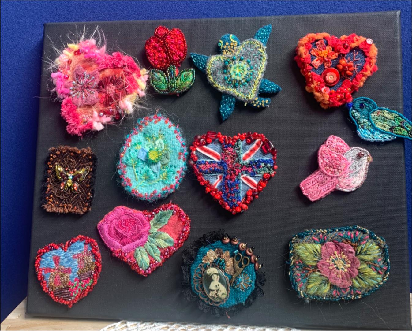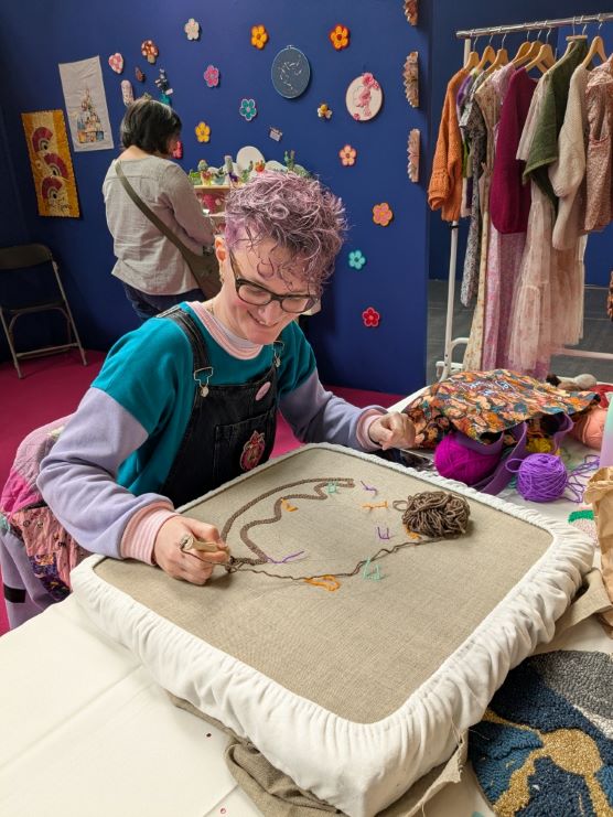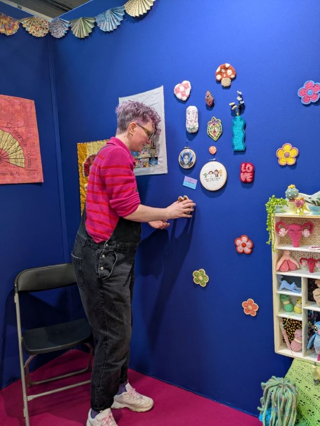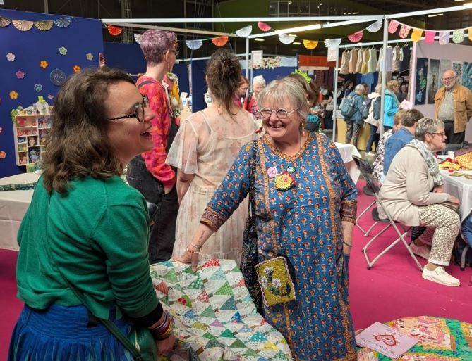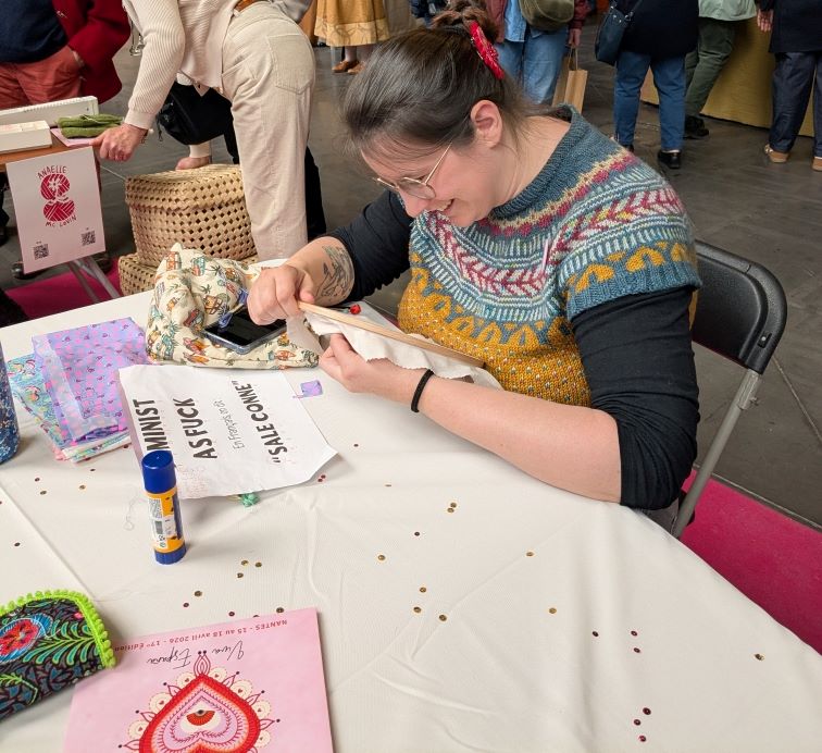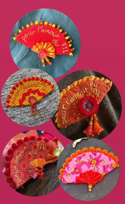 Cette année au Coin, vous avez eu des démonstrations de machine à tricoter par Anaëlle (@anaellemclovin), du punch needle avec Géraldine (@aiguillepirate), du quilting à la main sans tambour avec Cécile (@patchwork_inspirations), du patchwork à la main avec Christine (@christine_cplm), du crochet et de l’animation avec Clotilde (@kakotille), de l’appliqué-broderie avec Prescillia (@larevuedufil), de la bidouillerie géniale avec Sophie (@sophiebroderie) qui a créé les broches-éventails que tout le monde nous enviait… Et d’autres comme moi, sans rien à montrer mais heureuses de discuter tranquillement au Coin avec vous. L’année prochaine, nous innoverons avec une amie du Morbihan qui viendra peut-être filer sa laine et faire de la dentelle…