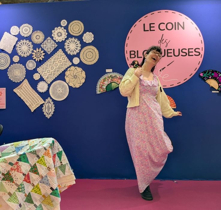 Je sais bien que les blogs sont devenus moins nombreux, moins lus aussi que les posts sur Instagram. Mais dans le petit monde des arts textiles français, nous sommes un petit groupe d’irréductibles qui prenons encore le temps d’écrire pour notre plaisir – et le vôtre, je l’espère. Nous sommes rejointes par des talents reconnus et visibles sur Instagram et conservons le nom de Coin des Blogueuses, bien identifié au Salon, comme un vaste lieu de retrouvailles pour toutes, de discussions, de pause tranquille aussi. Faisons un petit tour avec Sophie :