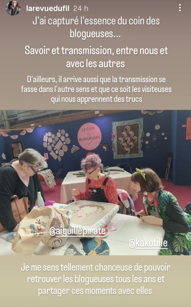 J’aime la fantaisie de la jeune génération, elles sont adorables, fantaisistes tout en étant extrêmement douées. Au Coin des Blogueuses, nous faisons un beau mélange de générations et de passions autour du Fil. Pour l’Amour du Fil, nous sommes ensemble ! Quelques clichés de ces 4 jours :
