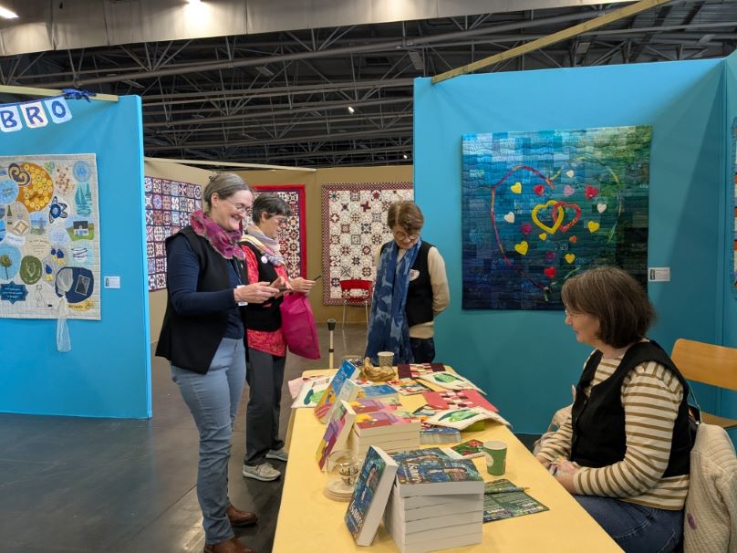 Cette exposition va voyager, ce dont nous nous réjouissons ! Je peux d’ores et déjà vous annoncer qu’ECOLAINES, près de Rennes, vous invitera à venir voir ces quilts dans leur magasin du 20 au 27 juin 2026, avec dédicaces de Joëlle les 20 et 27.