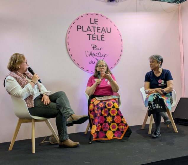 Au cours des 4 jours, je suis passée plusieurs fois près du Plateau TV, il y avait des démonstrations, des conversations que j’écouterai en podcast quand tout sera en ligne. Mais je me suis octroyé le droit de visionner entièrement le documentaire YODEL avec Jacques Légeret (voir ici et là), et d’écouter Isabel Larzillière et Corinne Ortillon, représentant France Patchwork ❣