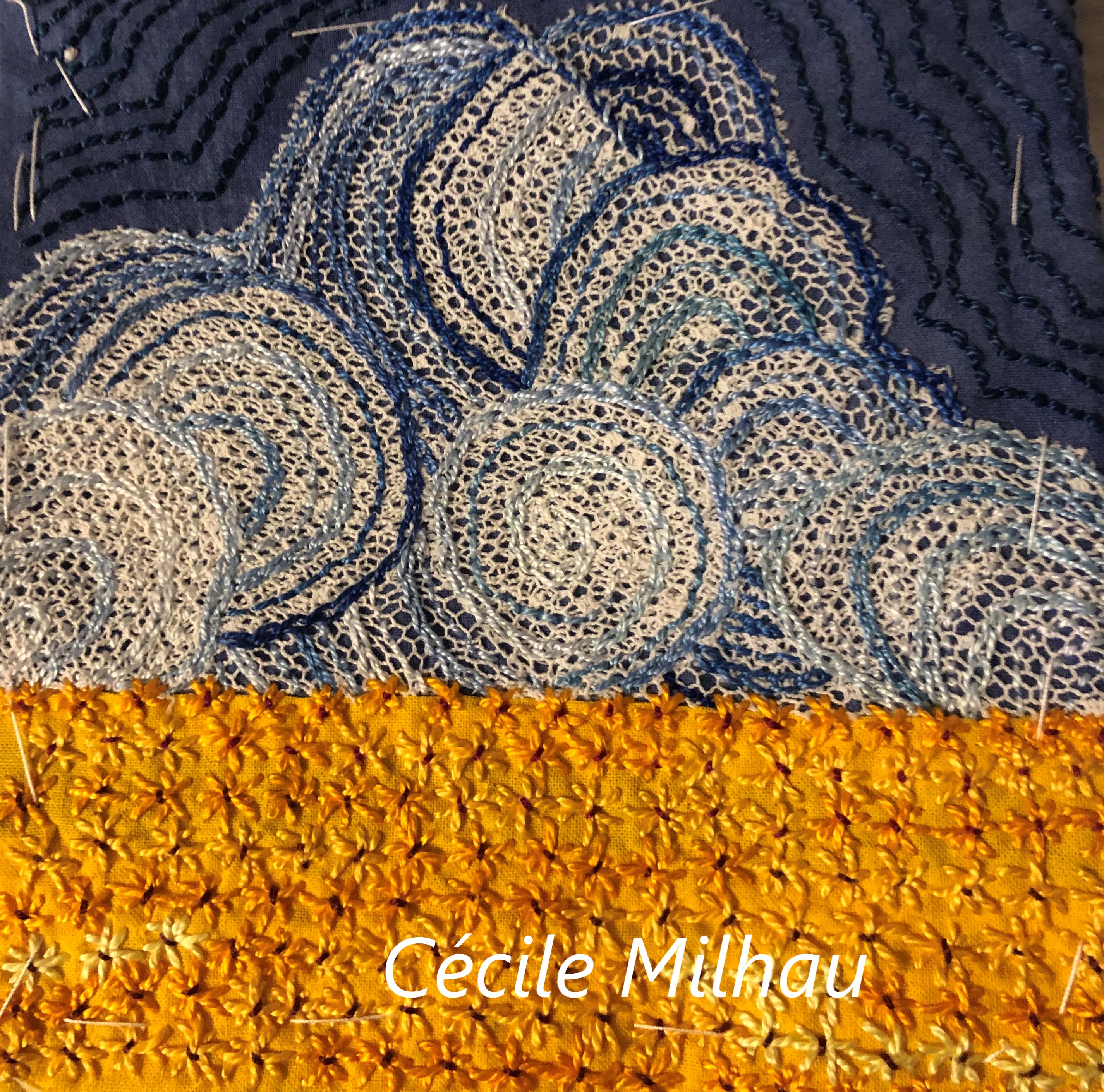 Que chaque artiste exposée soit remerciée et félicitée, car j’ai entendu tant d’éloges qui vous sont destinés ! Vous venez aussi de toute la France, et même au-delà pour Teri. Merci donc à (dans l’ordre de l’accrochage de la salle, pour n’oublier personne) Marie-Odile Prévost, Michèle Pocachard, Claudine Cherbonnier, Danielle Birello (2 quilts), Christianne Humbert, Éliane Géraud, Lucie Gondran, Anik Billot, Nicole Marty, Liliane Brescia, Muriel Figuière, Gisèle Bouchard, Annie Labruyère, Chantal Bommier, Teri Totné (Hongrie), Édith Bariat, Muriel Figuière again, Kristine Toufflet, Simone Florès, Évelyne Carrasco, Maïté Findeling, Léna Meszaros, Bernie Alquier et Cécile Milhau (livre textile).