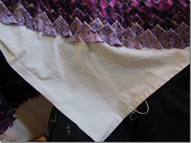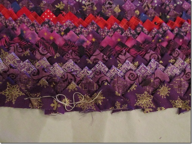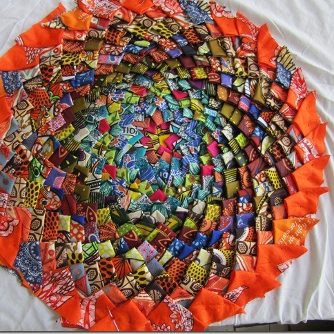Pour la première fois, Betty choisit de terminer son Pine cone quilt en forme de rond, comme nous en avions faits ici ; nous les lui avions montrés et elle avait beaucoup aimé !