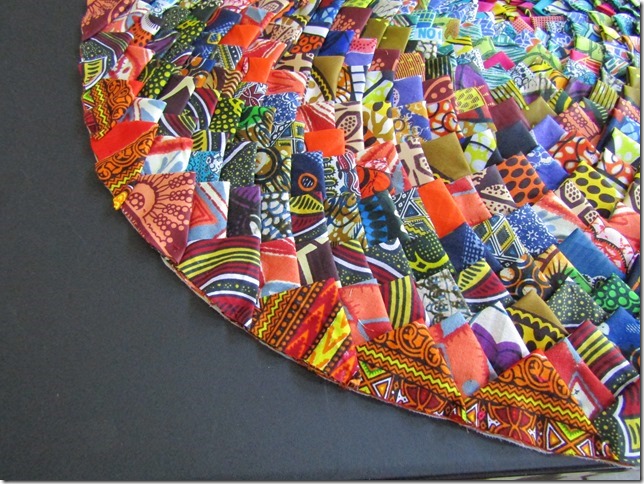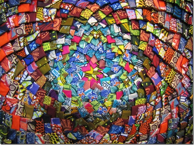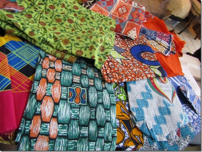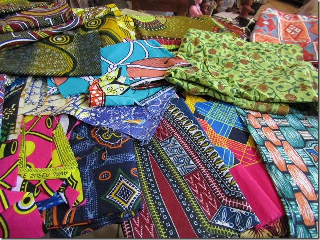 Nous sommes quatre Abeilles à, soit avoir vécu en Afrique noire, soit y avoir de la famille, et nous avons de beaux souvenirs liés aux personnes qui y vivent. et bien sûr un attachement à ces tissus hauts en couleurs, dont nous conservons le moindre bout. A présent, c’est surtout Andrée qui nous fournit : grâce à sa belle-fille, nous avons reçu, ces dernières années, beaucoup de petits et grands métrages du Cameroun, trouvés chez des couturières de Yaoundé.