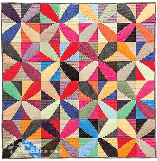 Ce bloc est proposé avec d’infinies variantes de dispositions… Super pour utiliser beaucoup de petits restes de tissus vifs !Lisa Bonjean a repris un bloc des années 1930, réinterprété avec ses tissus, pour faire ce magnifique quilt dédié à sa mère (détail, voir aussi ici).