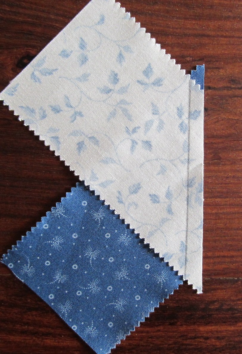 Pour un bloc, il vous faudra de 2 à 5 tissus différents (voir ci-dessous). Pour ces explications, je choisis l’option de deux tissus. Il faudra couper, dans chacun des deux tissus :