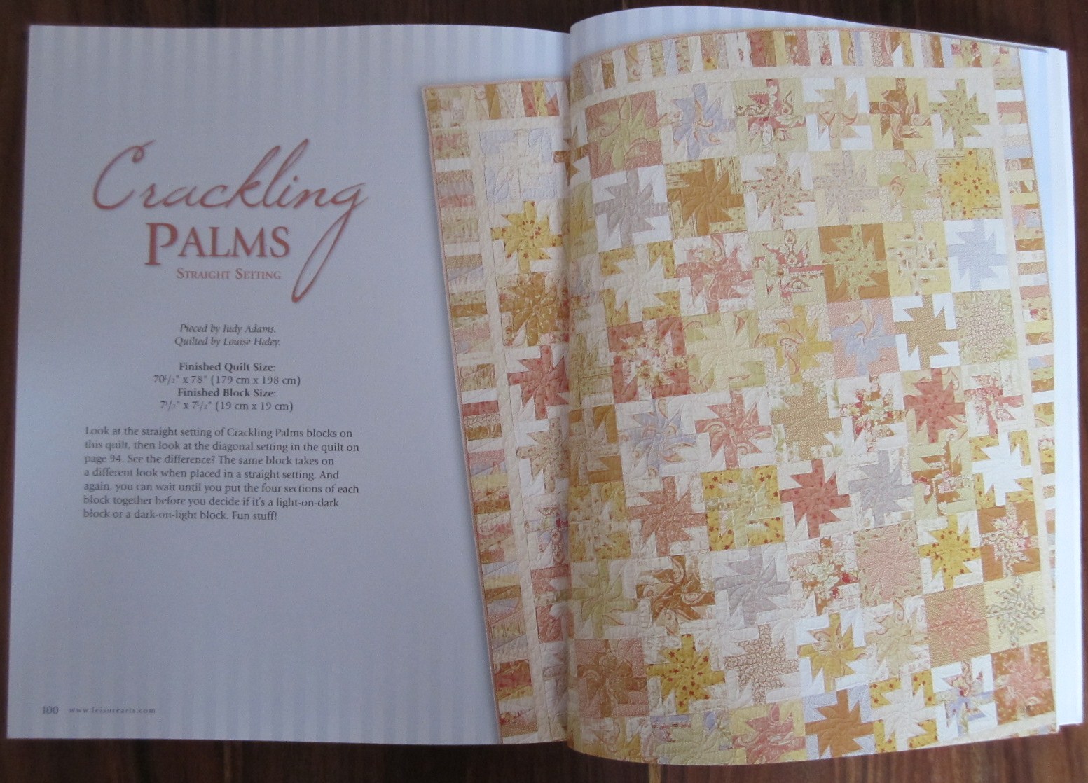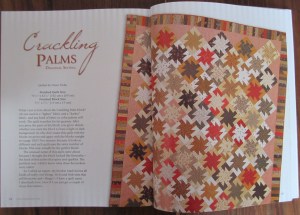 Les Moulins de Béatrice (Une Aiguille dans une Botte de Foin) avec un « Honey Bun », ligne Aviary de 3 Sisters, Moda. Ce modèle est directement inspiré de Crackling Palms de Carrie Nelson (voir ci-dessous).