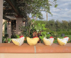 A savoir qu’avec le modèle « 30 cm », une bande de tissu de 6,5 cm coupé de lisière à lisière est suffisante par couleur, mais il n’y a pas de reste, pour la bordure par exemple.