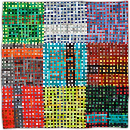 Voyons tout d’abord une infime partie des quilts d’Eleanor McCain sur ce thème, elle est parmi les premières à avoir fait une série de quilts avec des grilles qui donnent parfois des idées de tartan :