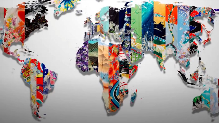 Pendant quatre ans, des dizaines d’artisans ont conçu les motifs, tissé et taillé de 213 kimonos célébrant la diversité du monde. Capture d’écran YouTube / compte Imagine One World KIMONO PROJECT