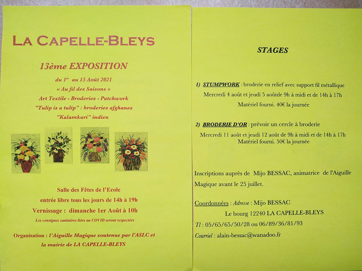 Mais ce vendredi, le cœur de notre sortie se trouvait à Lacapelle-Bleys, pour une exposition d’arts textiles, dans le sens le plus large du terme, organisée par l’Aiguille Magique avec la formidable Mijo Bessac.