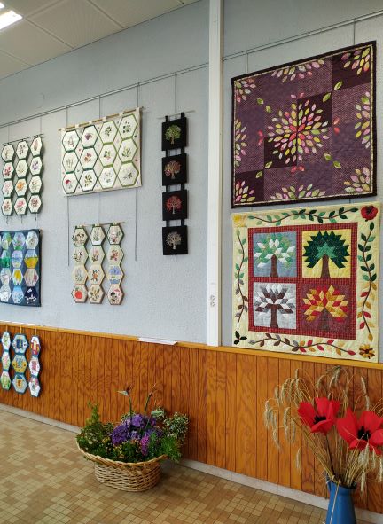 Les divers thèmes de l’exposition ont été bien souvent transmis par internet ces derniers temps, mais cela a titillé la créativité de certaines ! Dans cette grande salle, vous admirerez du patchwork, mais aussi d’autres travaux d’aiguilles parmi lesquels l’utilisation modernisée de la broderie Richelieu. Oui, la broderie est aussi à l’honneur à l’Aiguille Magique et nos gentilles sorcières ont des doigts de fées ! Outre la qualité des ouvrages, on sent la cohésion du groupe dans cette exposition.
