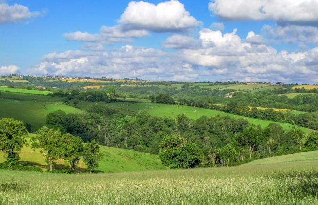La vitalité du village fait plaisir à voir. Il est situé au cœur d’un des vallons du Ségala, fertile région où l’agriculture raisonnée prend le dessus. Fait rare en août, pas de paillasse jaunâtre brûlée par le soleil mais des verts tendres printaniers, à la faveur des pluies récentes !