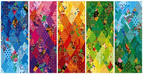 Des impressions d’écossais, de carreaux, de signes + sont explorées par des artistes contemporaines. Ces techniques sont simples, amusantes, mais longues tout de même ! En quilt moderne, le but est de ne pas copier mais découvrir, à partir d’inspirations, de nouveaux horizons…