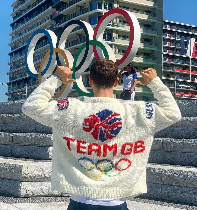 Déjà star chez lui, le plongeur Tom Daley est devenu inoubliable en tricotant en pleine épreuve sportive, attendant son tour dans la tribune… Comme lui, nous savons bien qu’occuper ses mains ainsi diminue le stress ! Il a même confectionné une pochette pour protéger sa médaille d’or :