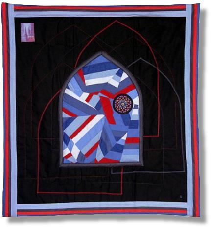 Peut-être verrons-nous éclore de multiples quilts en hommage à Notre-Dame ? Il y eut bien en l’an 2000 un vibrant hommage au Bleu de Chartres, organisé par France Patchwork 28, donnant lieu à de superbes quilts à voirici et là, les photos sont cliquables pour agrandissement. Parmi les participantes, notre amie Kristine, originaire de Chartres, ne manqua pas d’y participer :