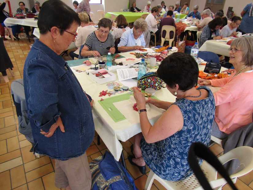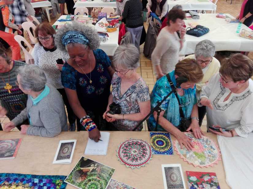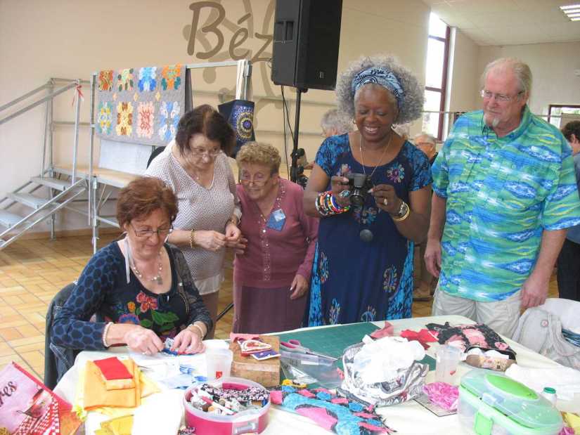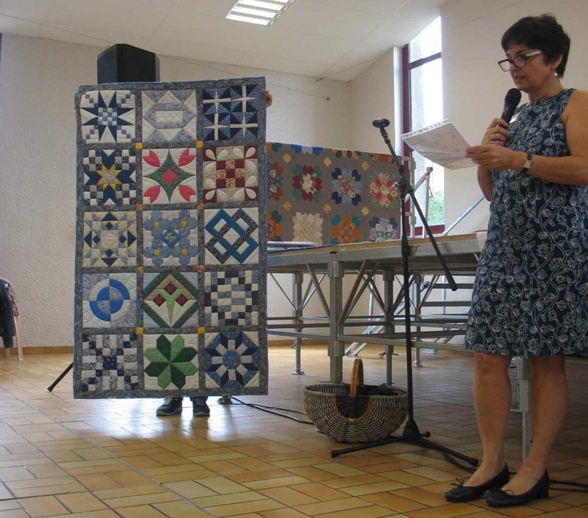 En début d’année, Anne-Marie et sa belle équipe FP09 m’ont demandé de faire une conférence sur les quilts afro-américains au fil de l’Histoire et un atelier sur les Pine Cone quilts. Deux semaines plus tard, heureuse coïncidence, Betty répondait à mon invitation qui datait de plusieurs mois et me demandait quelle serait la meilleure période… Je n’ai pas hésité à lui dire que l’idéal serait autour du 15 juin, date prévue de cette JA. Bien sûr, j’avais contacté Anne-Marie pour éviter tout impair, mais je connais bien mes amies d’Ariège, tout alla perfecto !