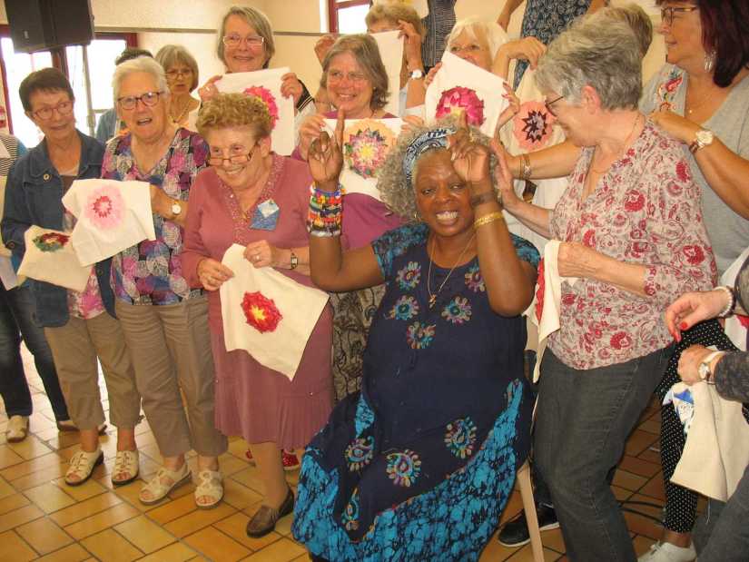 En patchwork, nous pouvons aussi élargir nos horizons. Le club de patchwork de St-Nicolas est très réputé depuis des décennies pour la qualité de leurs quilts faits à la main. J’ai cependant été sollicitée par Isabelle pour montrer quelques techniques permettant de s’amuser à modifier ses habitudes. On ne jette pas tout par la fenêtre, mais on prend quelques idées pour moderniser ses ouvrages, changer de style, se faire plaisir sans la crainte du cutter ou de la machine à coudre. Cap sur l’improvisation, sur l’acceptation de l’imperfection, la réjouissance des effets inattendus au lieu de la réplique exacte ! En une journée, les idées ont fusé, avec des périodes d’incertitude puis la joie de la réussite… Bravo à chacune d’entre vous d’avoir osé dépasser votre zone de confort avec le sourire et beaucoup de rires, et merci infiniment pour votre accueil si chaleureux !