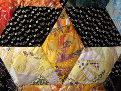 Dans cette partie du quilt, les contrastes sont parfois moins marqués, les répétitions n’ont pas été évitées… Ces imperfections donnent pour moi de l’intérêt à l’ensemble, l’oeil s’attardant sur toutes les particularités.